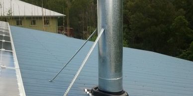 Roof penetration flue kits installed through any outdoor patio or pergola roof.